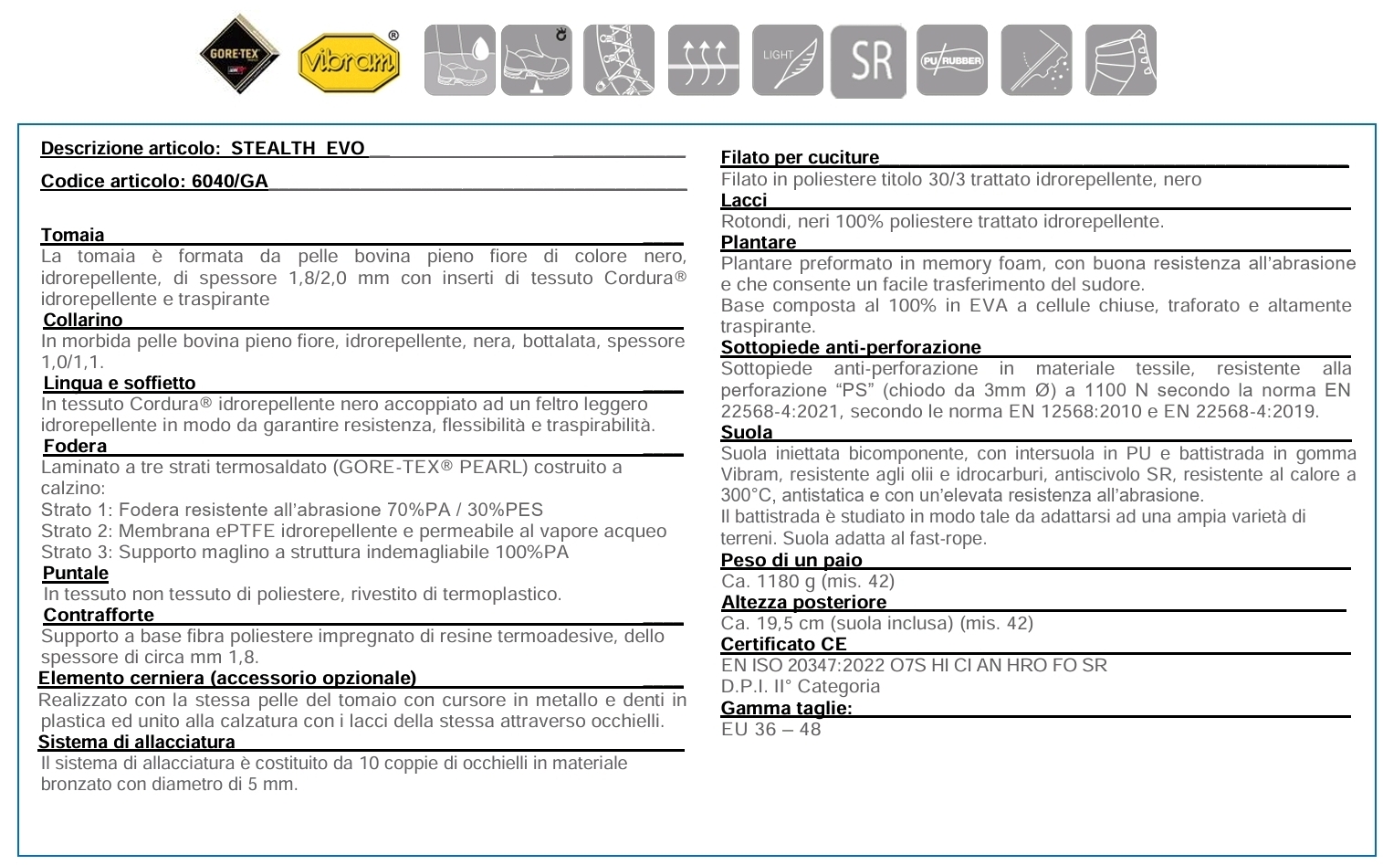 CALZATURA ALTA JOLLY UNISEX GORE-TEX® - STEALTH EVO ART. 6040/GA - NUOVO CAPITOLATO P.L. REGIONE PIEMONTE D.G.R. 2021