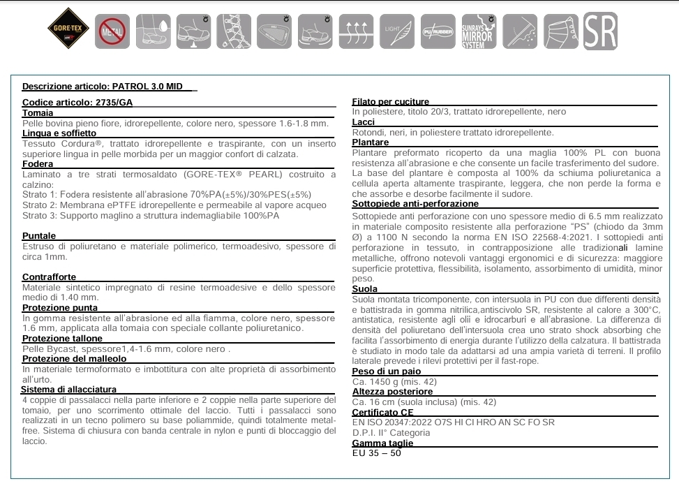 • La calzatura è provvista di un inserto anti-perforazione con elevata resistenza (30% superiore rispetto ai requisiti della norma europea EN ISO 20347)